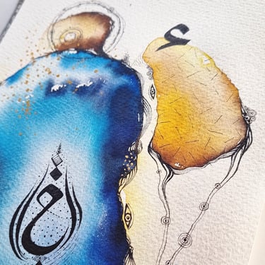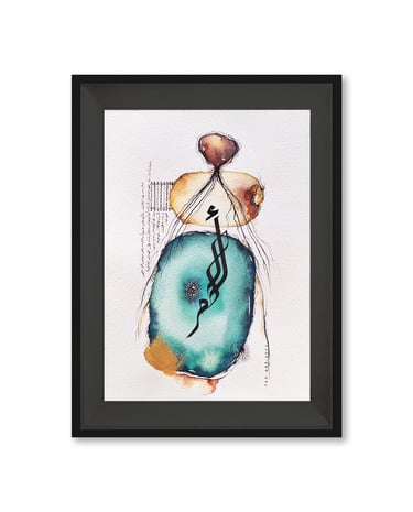 Some of my watercolor and acrylic paintings, incorporating Arabic fonts and intricate detailed drawings, create a fusion of tradition and modern expression, blending color, form, and script into harmonious and emotionally resonant artworks.